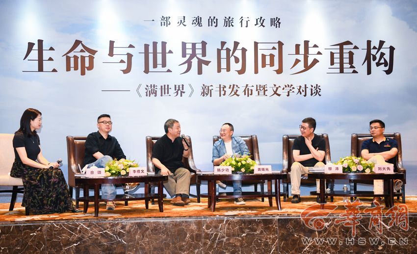 新書發(fā)布會(huì)現(xiàn)場(chǎng),著名文學(xué)家韓少功,著名作家、編劇、影視監(jiān)制李修文,中國(guó)社科院研究員、《民族文學(xué)研究》雜志副主編劉大先,《美文》雜志常務(wù)副主編、陜西省文藝評(píng)論家協(xié)會(huì)副主席穆濤和《滿世界》作者龔曙光,與來(lái)自全國(guó)各地媒體記者和讀者一起,展開了一場(chǎng)帶著靈魂旅行的討論。